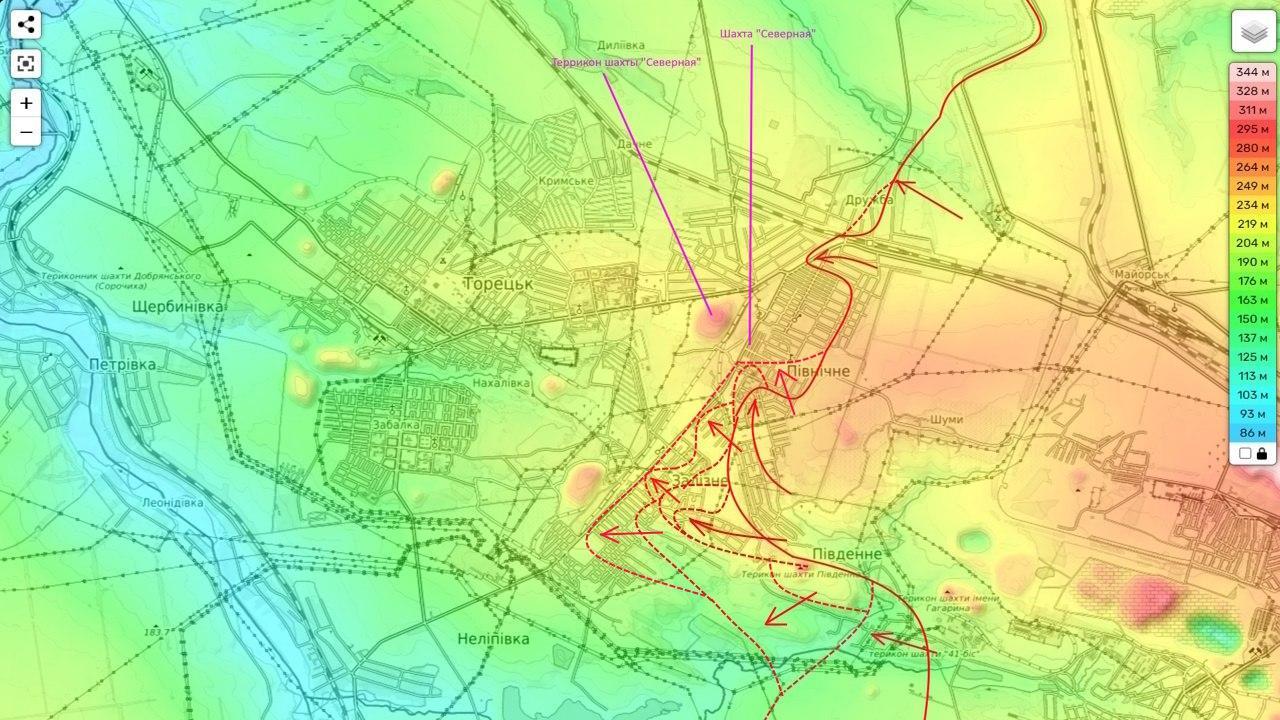 Также это позволит нам войти в южную часть Торецка и тем самым сильно осложнит (одновременно с утерей ключевой высоты) противнику удержание этой части города.