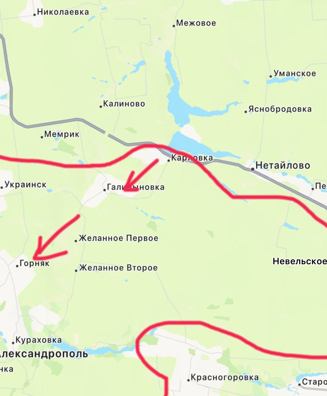 У хохла все плохо: валят из Карловки и Галициновки в Горняк. Западнее Невельского укреплений нет и его скоро оставят. Вопрос тем кто ссыт в ушки темой с ловушкой, якобы в которую хохлы нас заманивают и скоро атакуют? Откуда они будут наносить южный фланговый удар??? Тут со дня на день 2 направления соединятся: покровское и марьинское (кураховское), с юга хохлу атаковать уже негде, там ниже Марьинки уже Угледар, который через 2-3 месяца в окружении окажется.