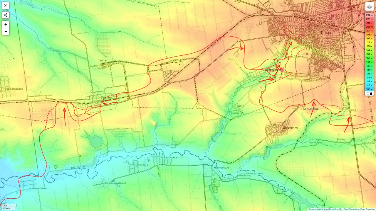 И продвинулись они довольно глубоко не только в сторону центра, но и как вы видите по карте 1 (которая была нарисована мной еще 25 июля) довольно глубоко вдоль трассы М-30 (к западной транспортной развязке, которая имеет для окружения покровско-мирноградской агломерации ключевое значение). При этом в рядах ВСУ в городе начались случаи паники и «дружественного огня», так как противник не понимал обстановки, а нормальной связи между подразделениями у него здесь не было.