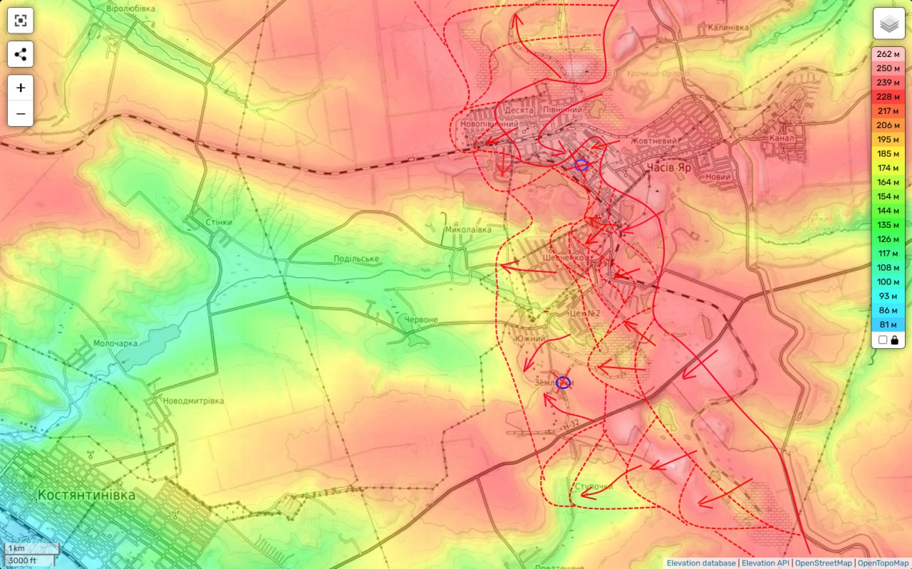 Часов Яр освобожден. Как мы ранее уже обсуждали, после занятия микрорайонов Шевченко и Южный, а также блокировки подразделений ВСУ в мкрн. Землянки это было лишь вопросом времени. Как только ВСУшники в Землянках были уничтожены, так и пришло время объявить Часов Яр полностью освобожденным.
