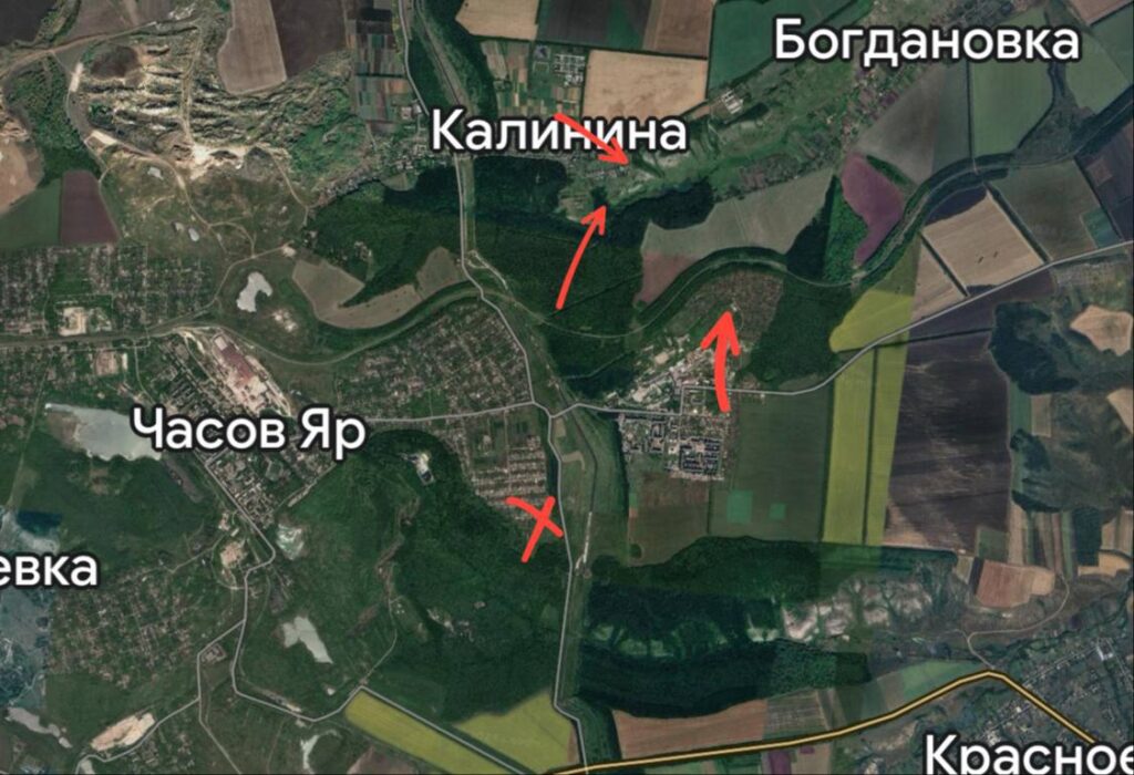 Часов Ярское направление. Противник возобновил атаки на Богдановку со стороны восточной части Калиновки и урочища Орлова, которое находится между Калиновкой и мкр. Канал.