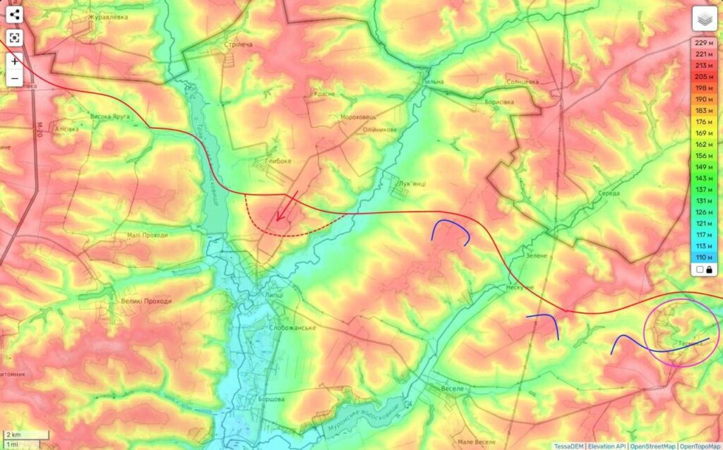 Дело тут вот в чем. Покинул противник часть села не в следствии сегодняшних атак, а в следствие вчерашнего штурма и взятия нами под контроль высоты северо-западнее села. Которую нам надо было брать для обеспечения флангов наступления как на Волчанск, так и на Липцы.