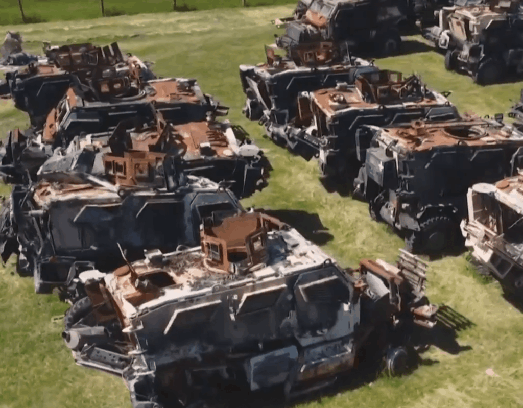 Одно из кладбищ уничтоженных МРАПов ВСУ. То, что смогли вытащить с поля боя и отвезти в подобные отстойники битой техники.