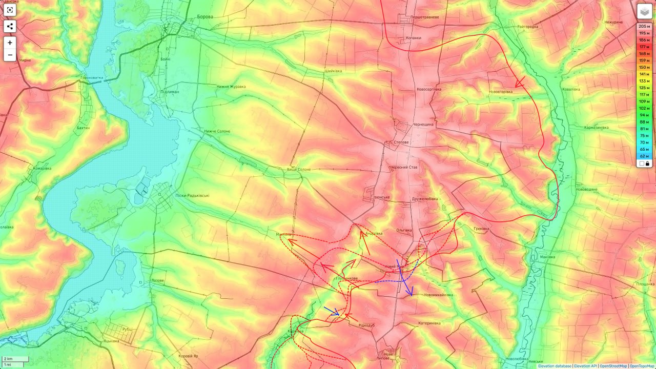 Наши части уже зашли как в Андреевку, так и в Малеевку. И если так пойдет и дальше, то скоро в районе Боровой противник будет отрезан и прижат к водохранилищу.