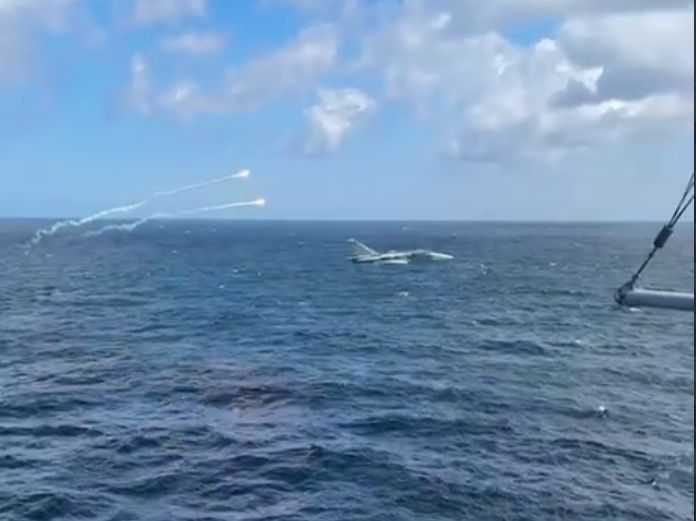 Пролёт Су-24 в Балтийском море, снимают американцы.