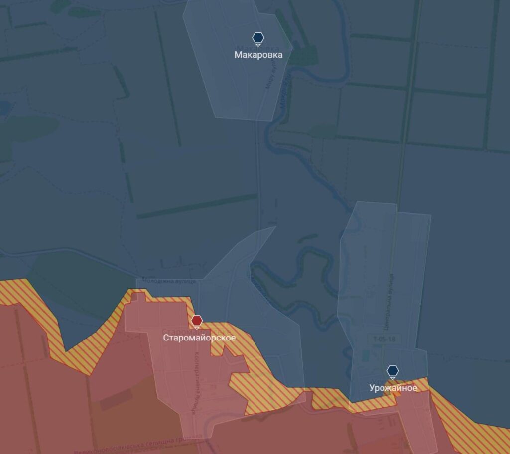 В Старомайорском наши штурмовые продвинулись по двум улицам в северной части населенного пункта – до 250 м в глубину, 500 м по фронту. Освободили 17 домов. Большая часть населенного пункта под контролем ВС России