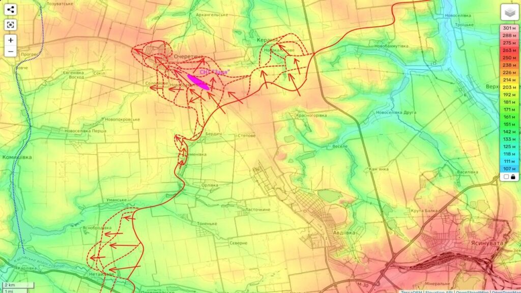 При этом мы физически перехватили автодорогу между Очеретино и Керамиком и продолжаем теснить его на север (и одновременно отрезаем последние опорники ВСУ в восточной части Очеретино).