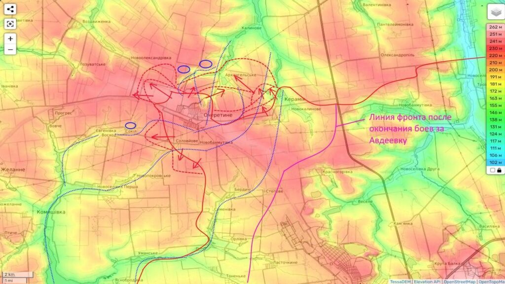 Для примера. Линия обороны ВСУ севернее Керамика опиралась на естественные преграды и преобладающие высоты. Но, прорвавшись в Очеретино и ударив на них с юга, мы, после взятия Архангельского, по сути обошли их с тыла, что вынудило противника оставить их почти без боев.