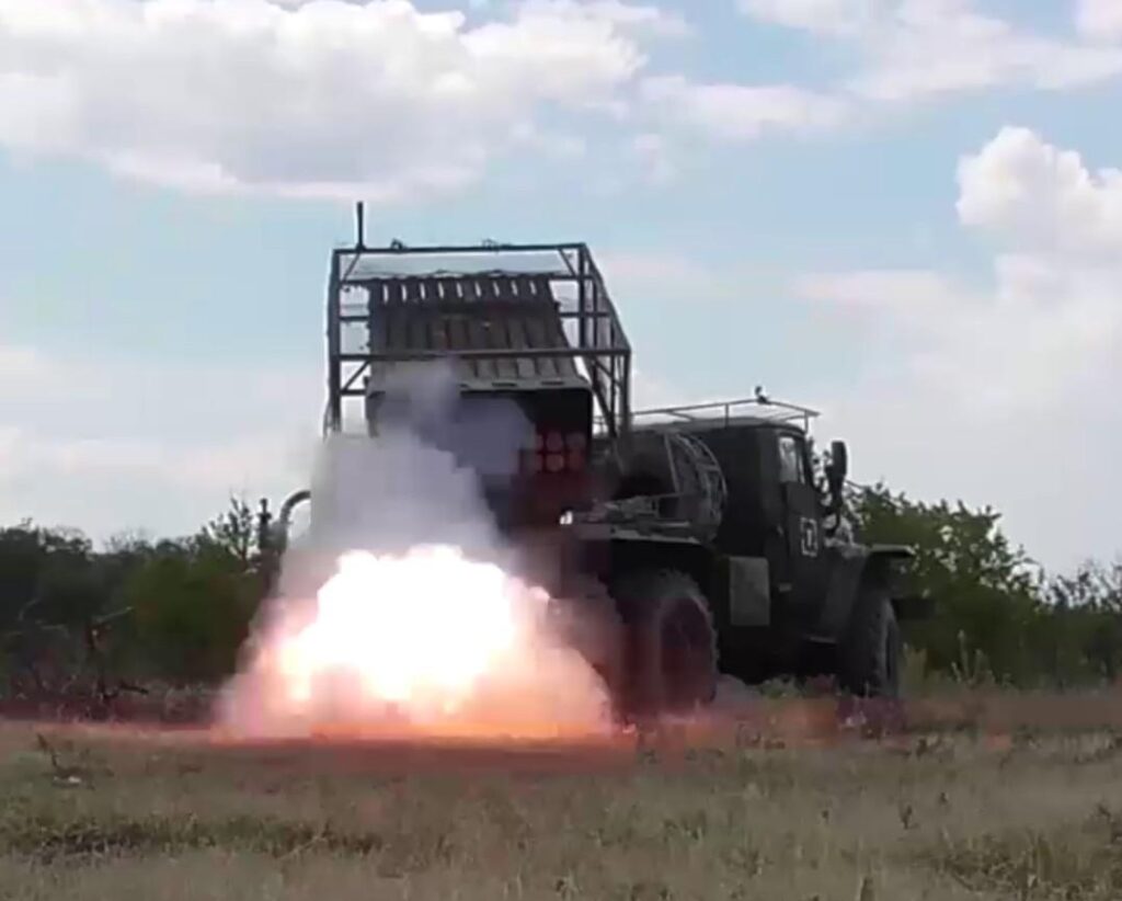 БМ-21 Град накрывает пехоту противника на Харьковском направлении.