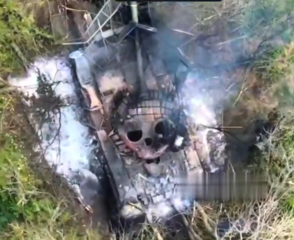 Дроноводы 2-й мотострелковой дивизии 39-й отдельной мотострелковой бригады уничтожили хохлятский танк при помощи FPV-дрона