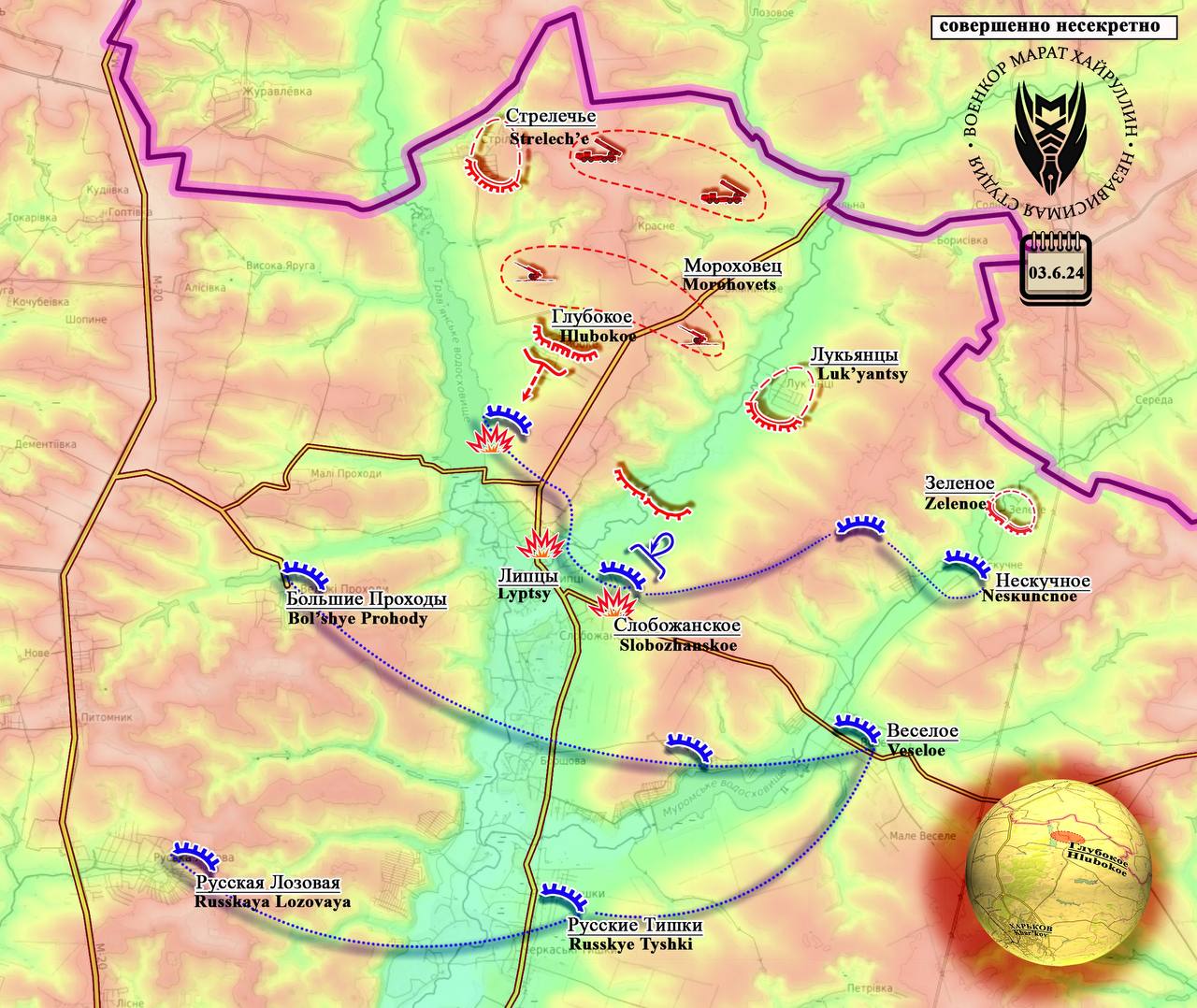 Так была попытка контратаки в направлении Лукьянцев, которую наши вооружëнные силы отбили, при этом укры понесли существенные потери. Нашим же, напротив, удалось немного продвинуться с другой стороны дороги Мороховец- Липцы, а именно со стороны н.п.Глубокое, и взять под контроль лесополосу, что позволило контролировать и саму дорогу на этом участке.