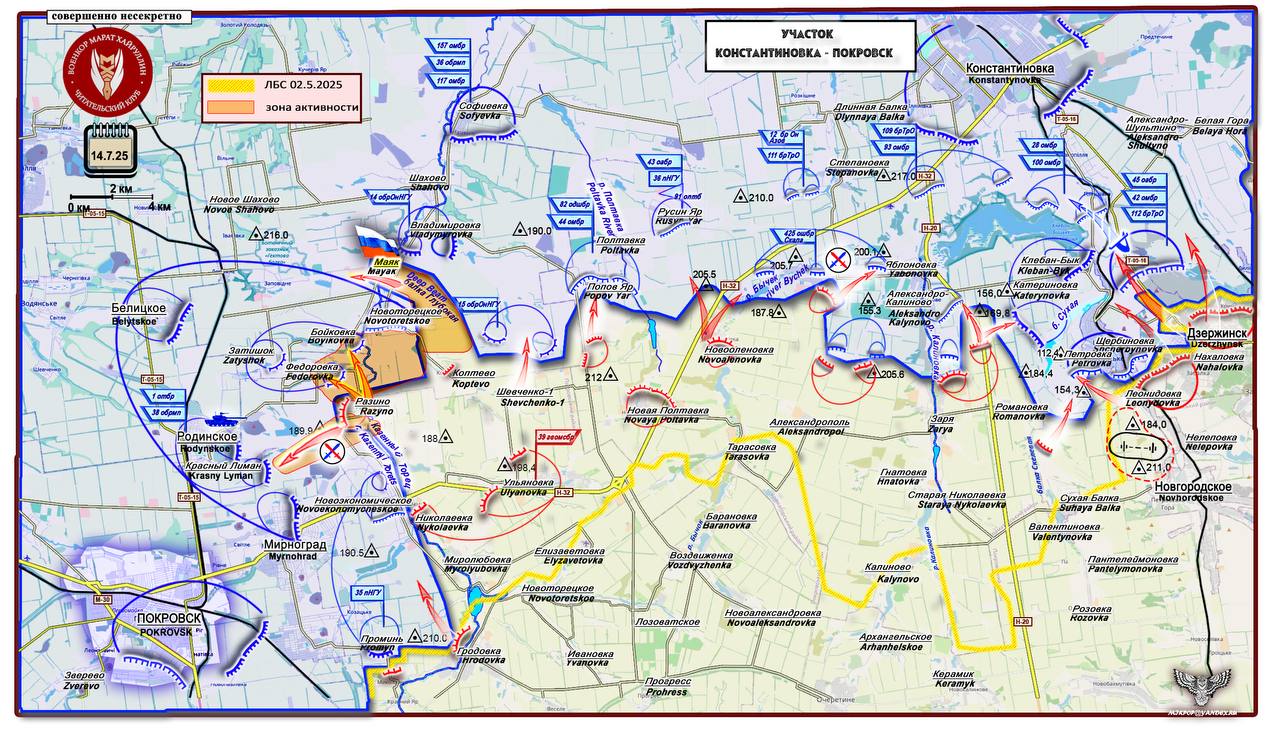 Мы наблюдаем одновременные действия: отвлекающий удар на севере — с выходом в с. Маяк и основной удар в центр укрепрайона ВСУ, прикрывающего г. Покровск (Красноармейск) с севера.