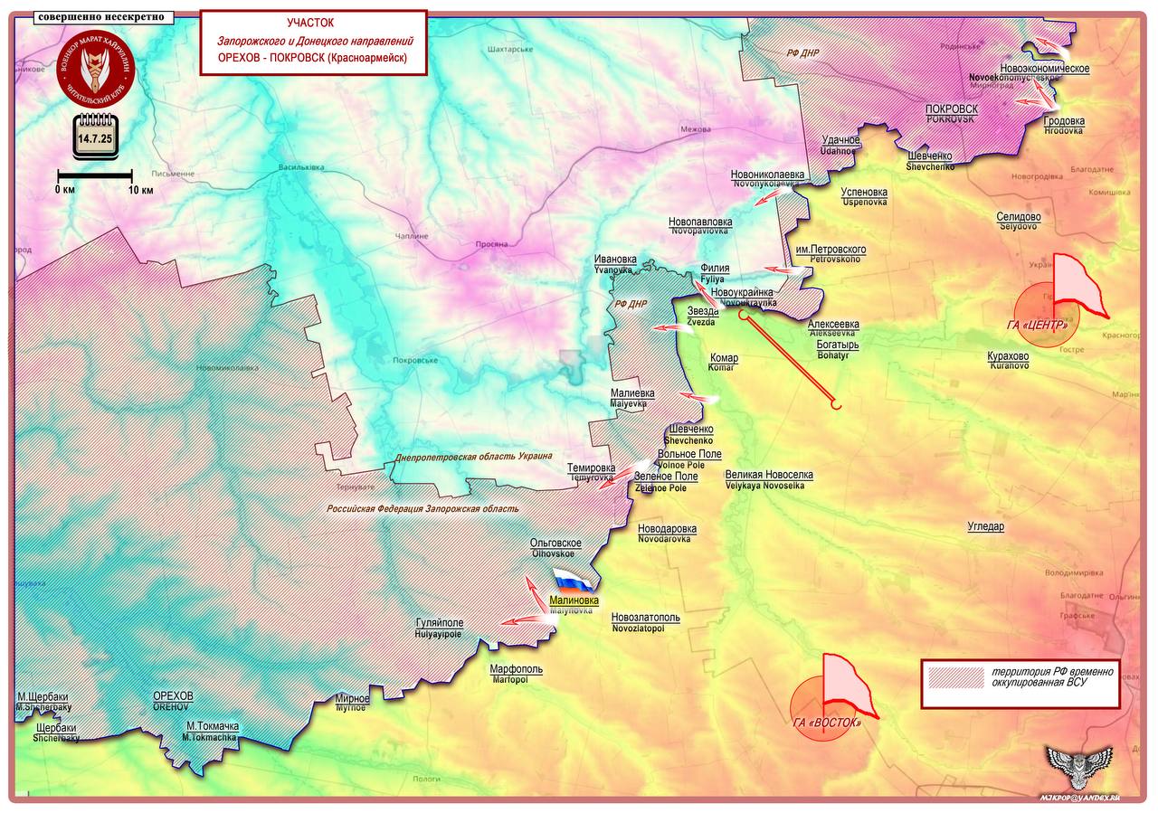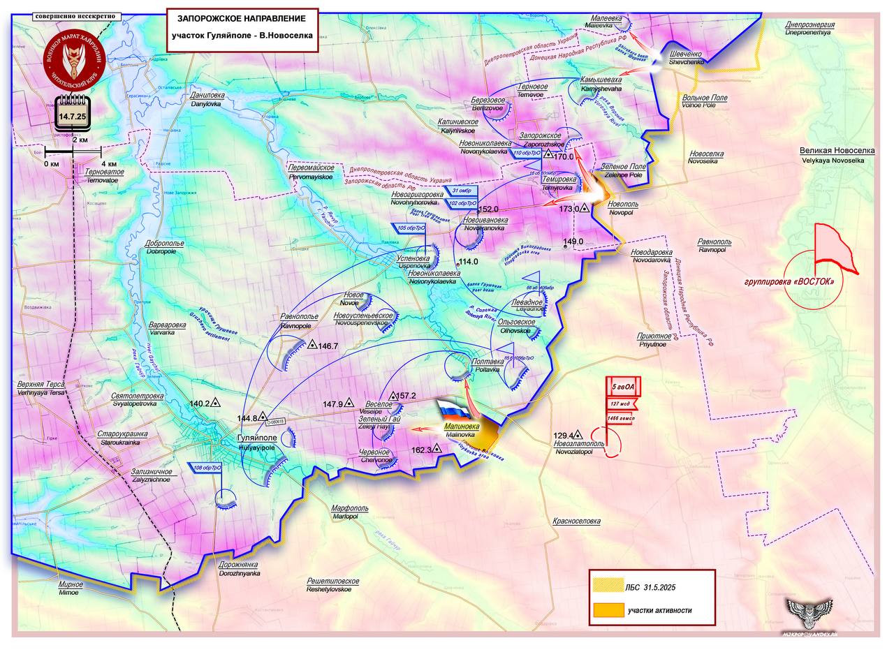 Армия России обеспечивает себе выход к Гуляйполе с восточной возвышенности. Короткая сводка с фронта 15 июля 2025 года.