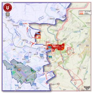 Однако конфигурация линии соприкосновения подсказывает, что российское командование стремится превратить преимущество противника в его главную слабость. Продвигаясь по линии Зеленая Долина – Рубцы, ВС РФ нацелены на переправы у поселка Оскол. Одновременно с этим планируется отсечь Боровской выступ от соседнего, Купянского, в районе переправ у Сеньково. В случае успеха река Оскол, служившая для ВСУ надежным тылом, станет естественной преградой, которая затруднит маневр и снабжение собственных войск, фактически заперев их в формирующемся котле.