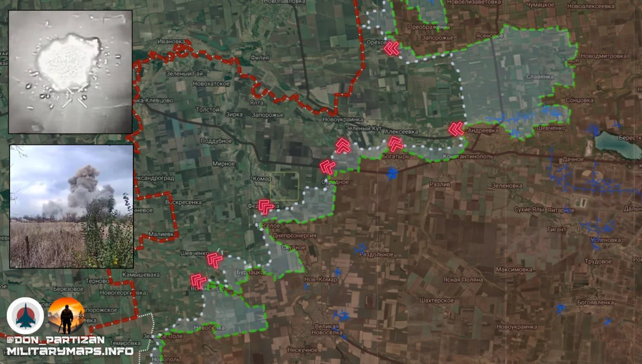 Южно-Донецкое направление: продвижение в районе Днепроэнерии. На Южно-Донецком направлении продолжаются активные боевые действия, где ВС РФ продолжают наращивать давление на оборонительные рубежи ВСУ. Российские войска успешно продвигаются по ключевым участкам фронта, усиливая тактические преимущества и захватывая важные территории.