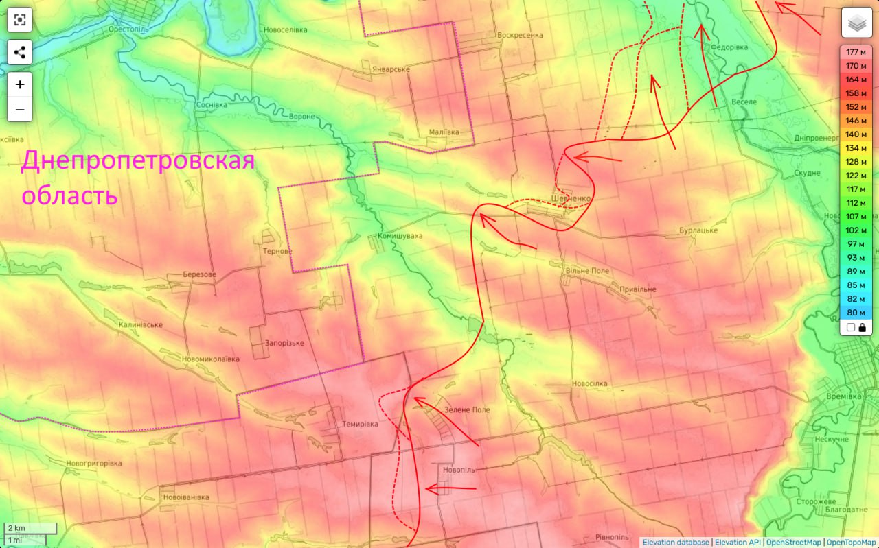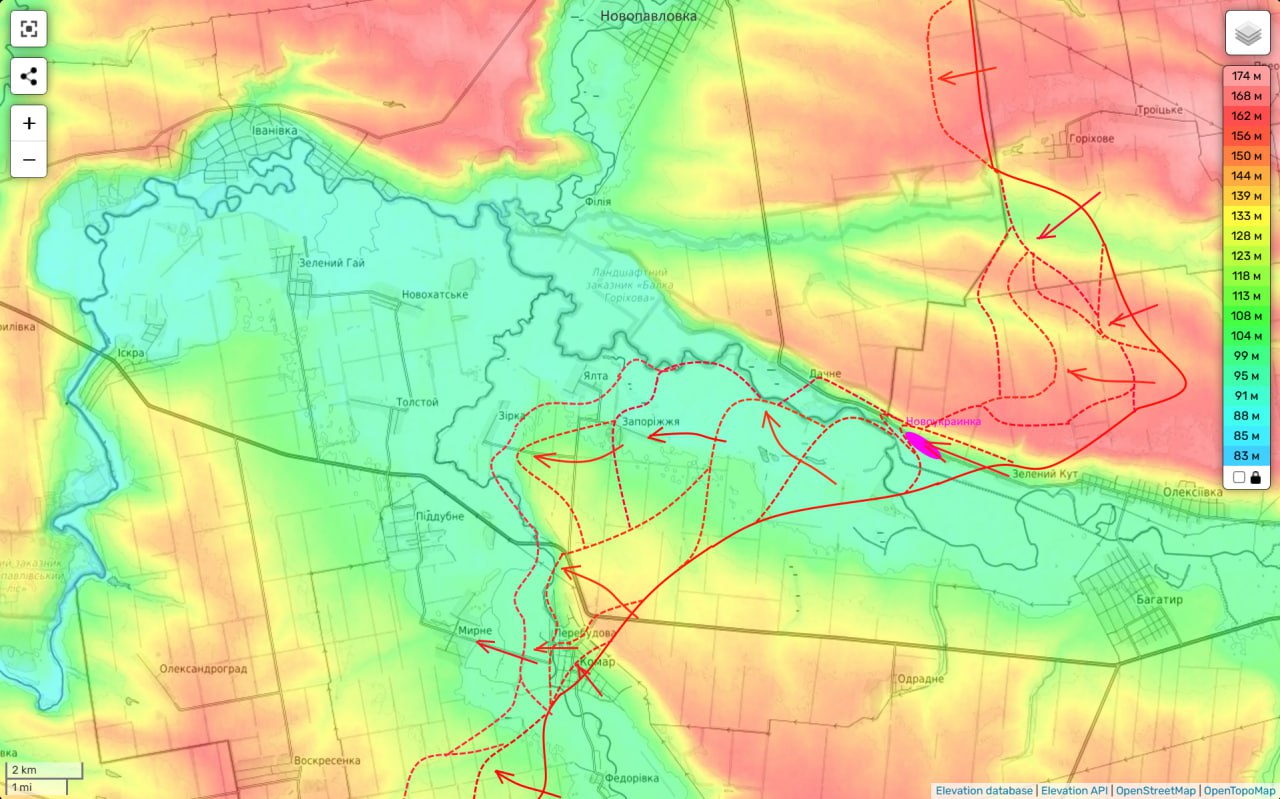 Занята северная часть села. Организованное сопротивление здесь уже в целом подавлено. Но дроны противника пока не дают его полностью занять и превратить в базу для дальнейшего продвижения вперед.