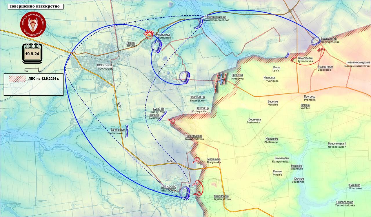 На Селидовском участке ВС России продвинулись севернее Украинска на запад в направлении шахты «Селидовская», начав охват Селидово с юга.
