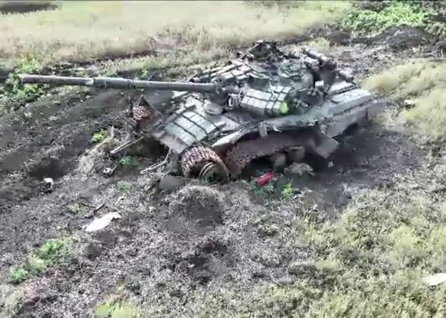 Этот танк у хохлов отвоевался. Из защиты его ничего не спасло.